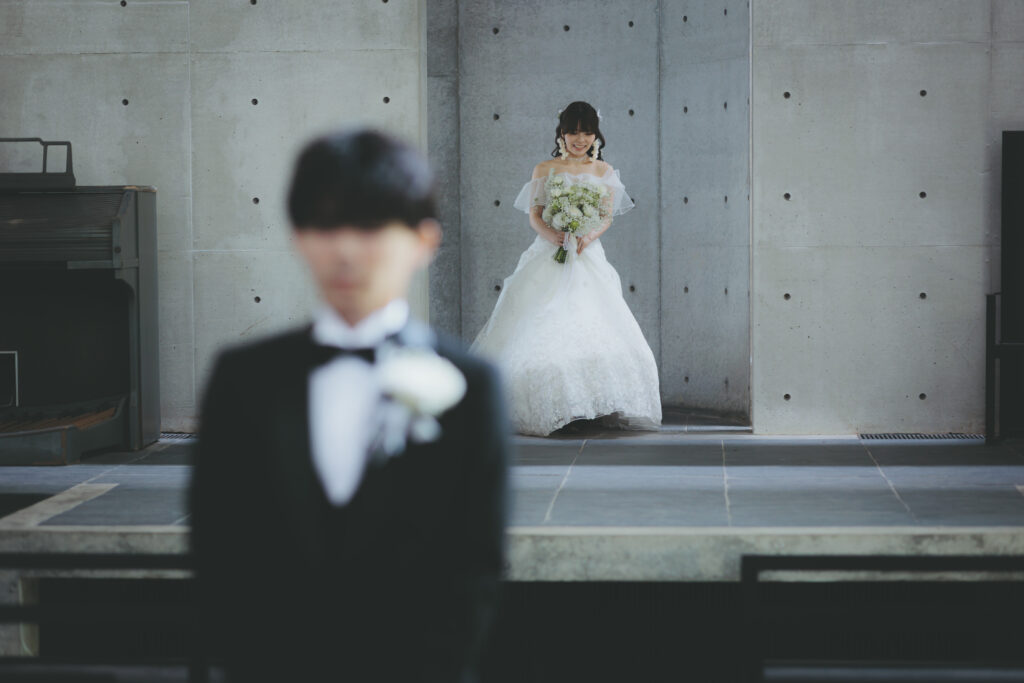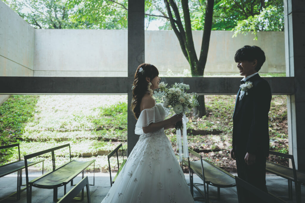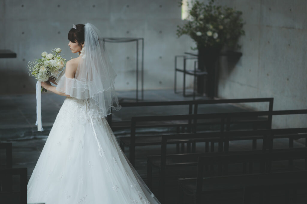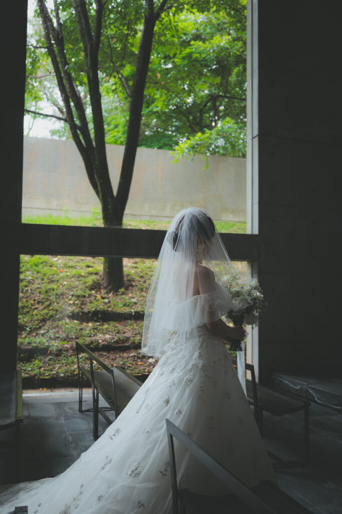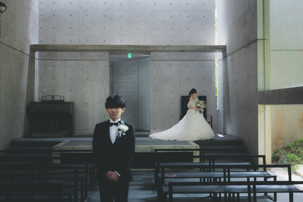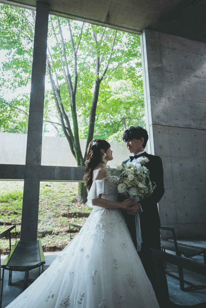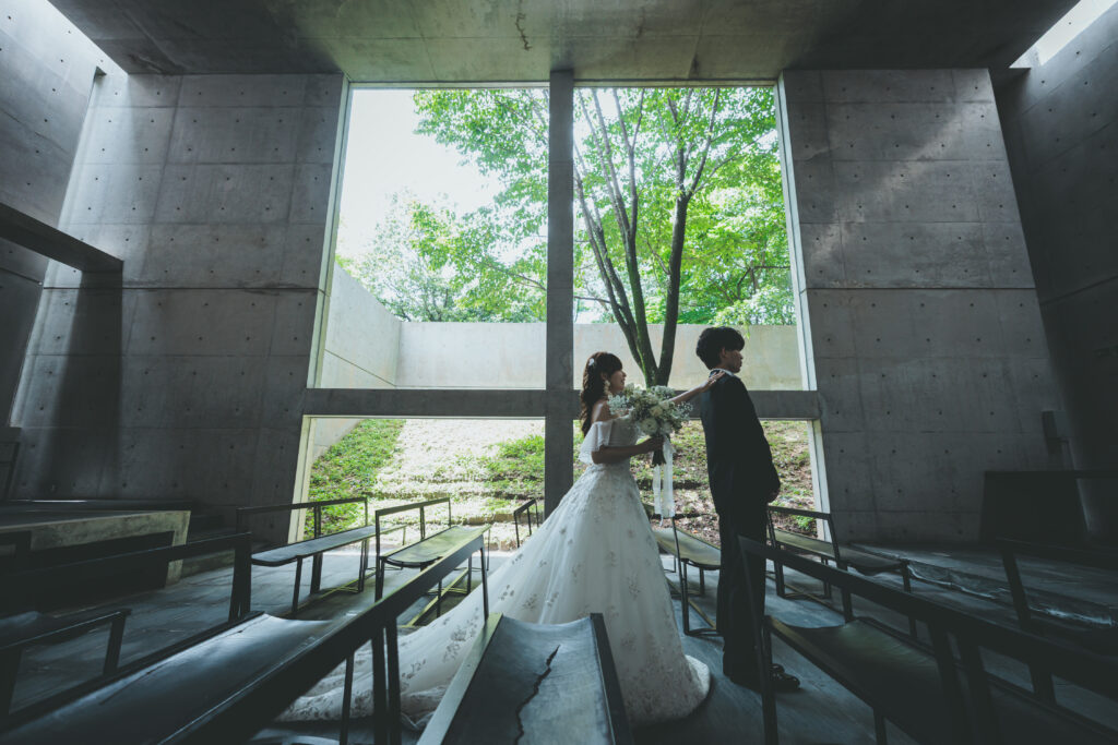 風の教会に入る光と影から表現できる撮影は、洗練されたお写真が叶います。