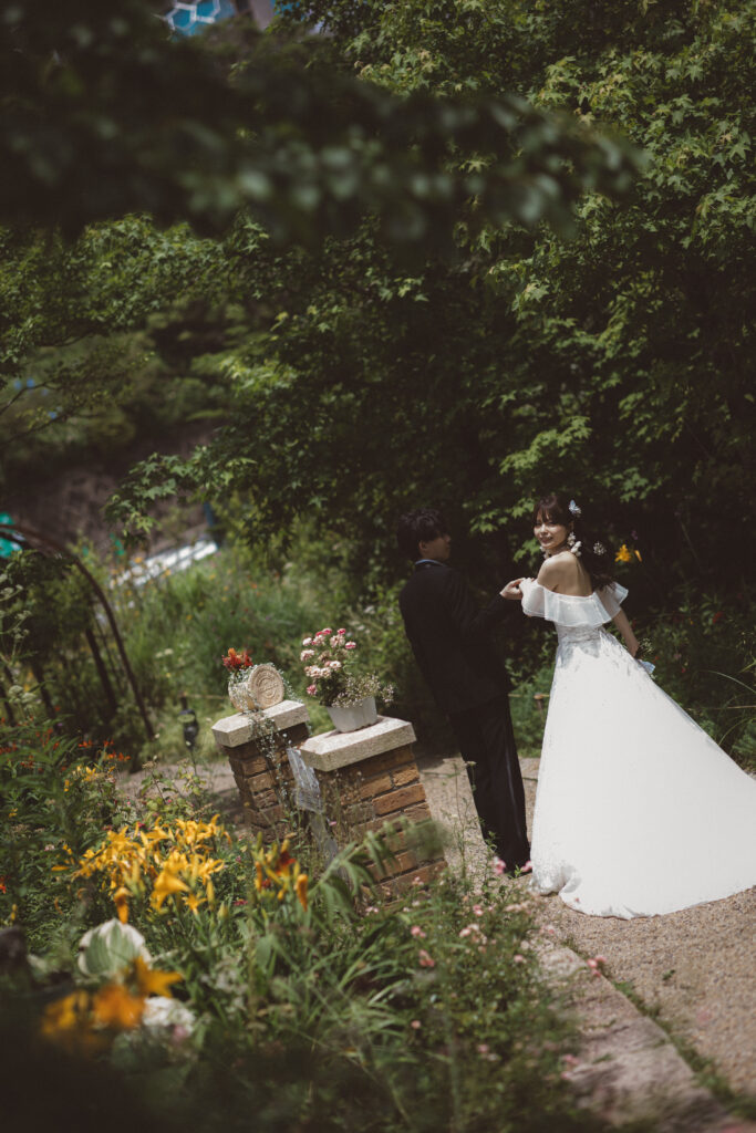 ガーデンテラス内にあるイングリッシュガーデンのお庭には、四季折々のお花が咲き、お庭でお散歩しているようなシーンも叶います。