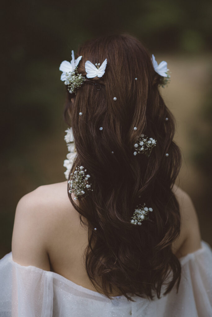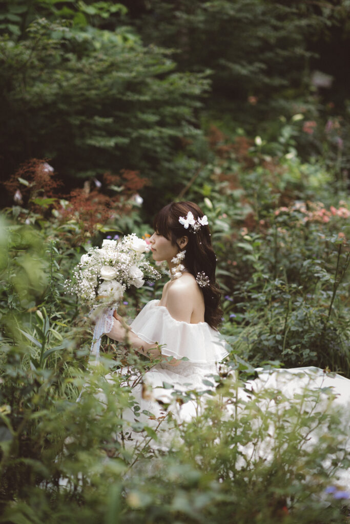 ロケーション撮影から風の教会への撮影に向けて、ヘアチェンジも可能です。