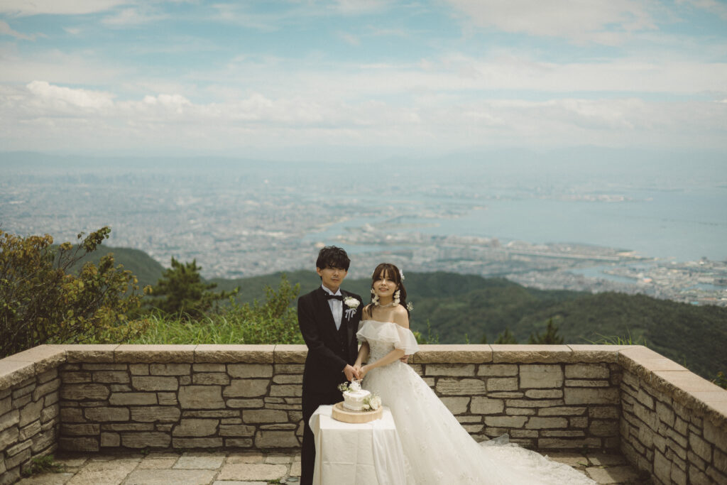 今回のフォトウェディングでは風の教会の周辺にある六甲山施設、六甲ガーデンテラスへ移動して撮影を行いました。素敵なロケーション撮影が叶います。