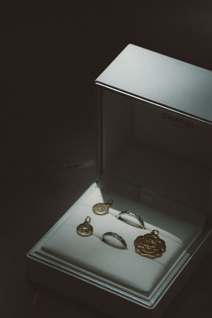 撮影が始まる前には、新郎新婦様の想い出の品を用いた撮影や本日身に着けるアイテムの撮影をしました。