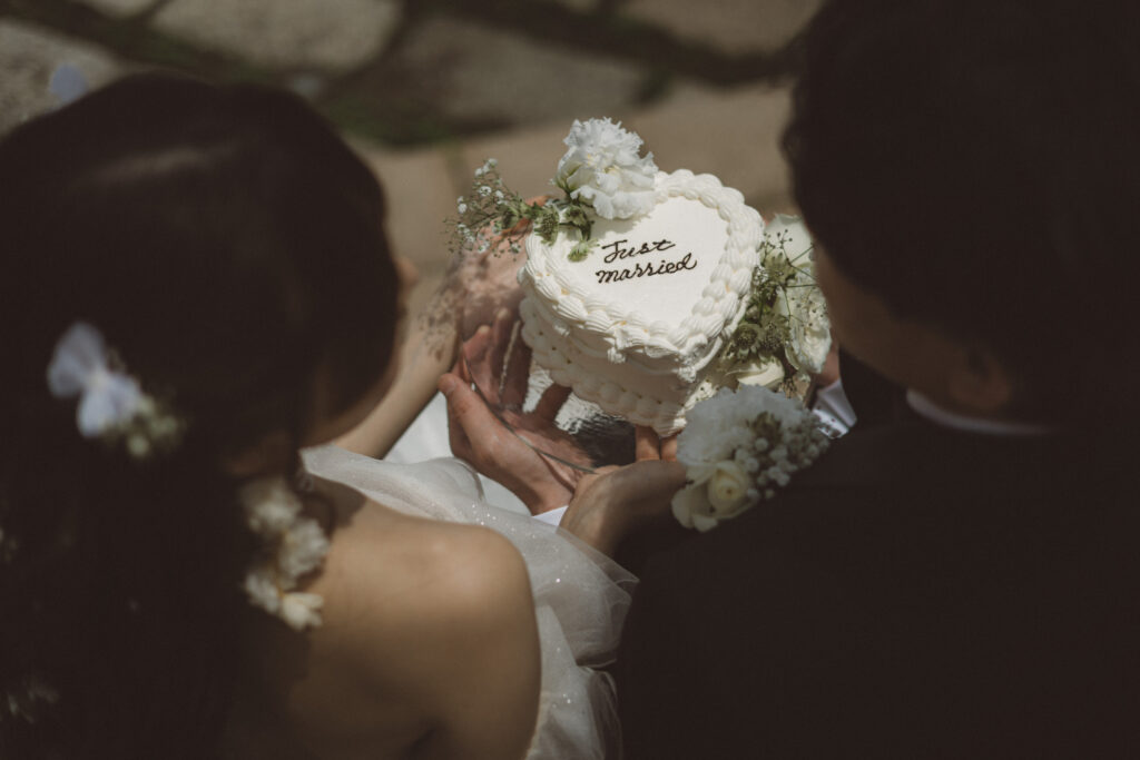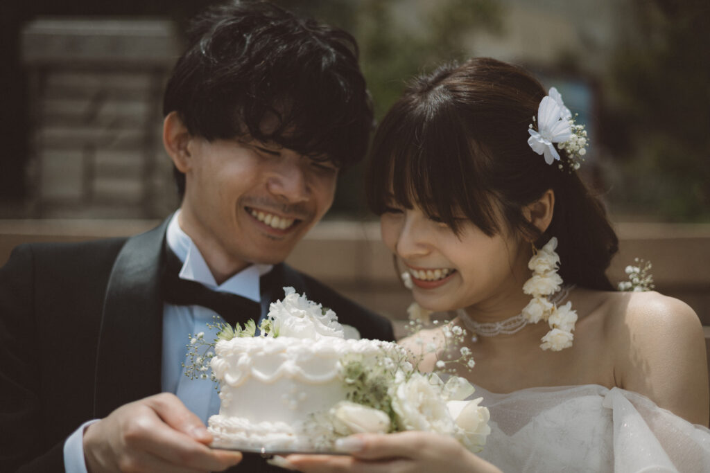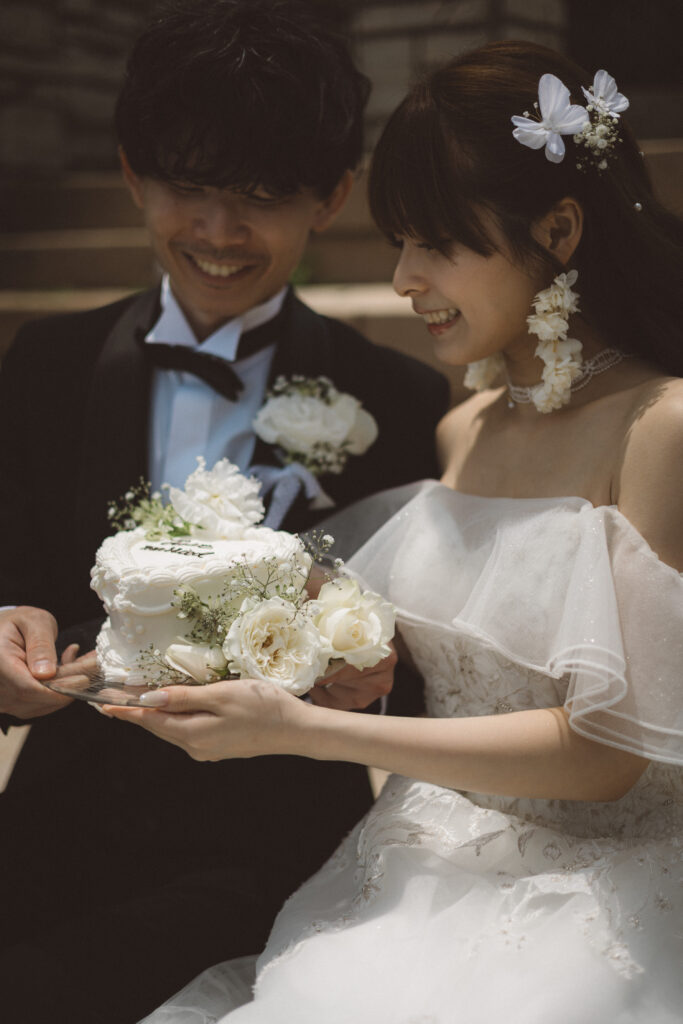 そして、今回のフォトウェディングの撮影では、おふたりのリクエストでウェディングケーキをご用意しました。