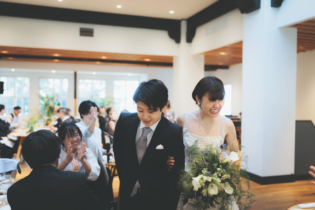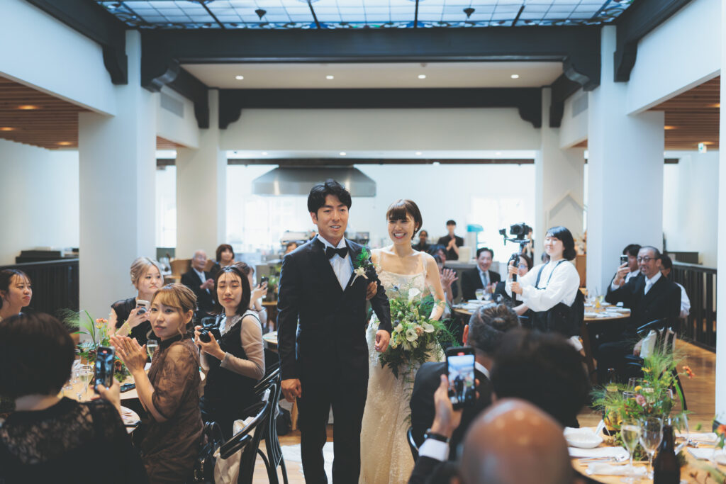会場がほっこりと楽しい時間に包まれる中、新郎新婦様の入場です。