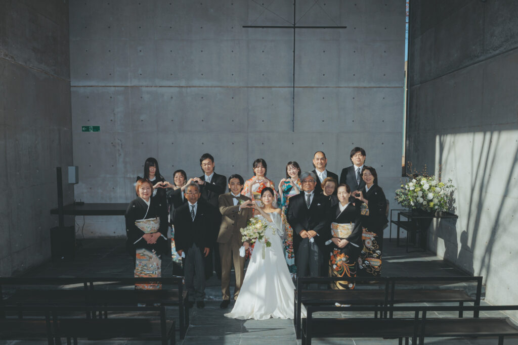 挙式後には、全員集合写真・家族写真の撮影を行いました。