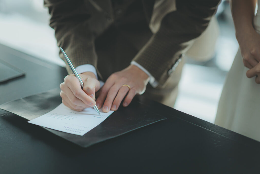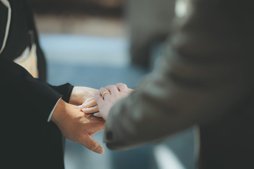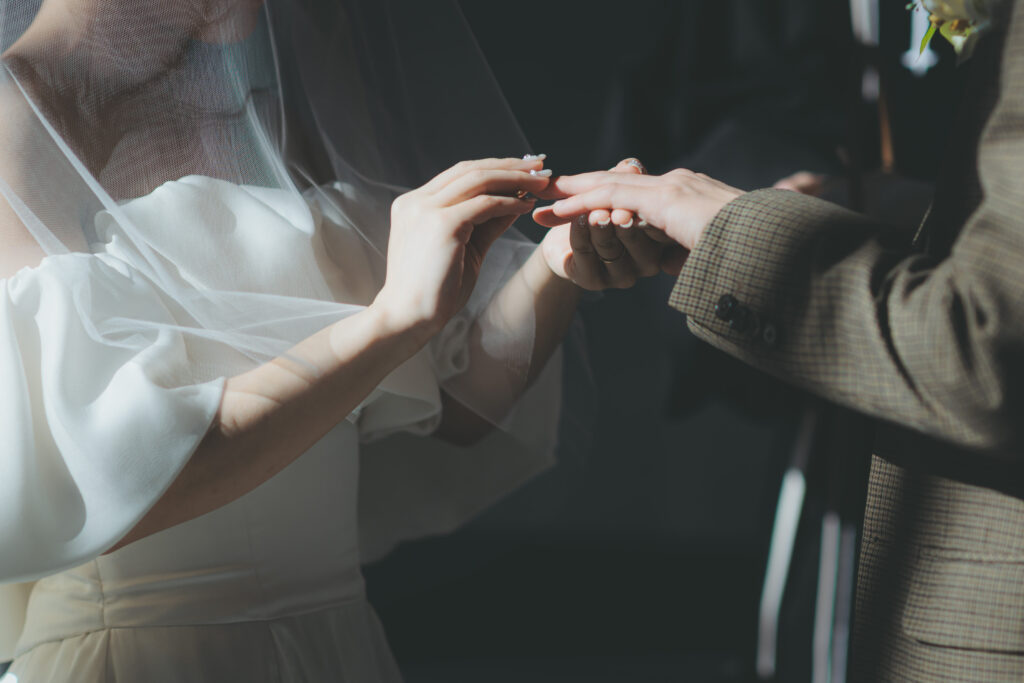 指輪を交換し、お二人の結婚の証を示します。