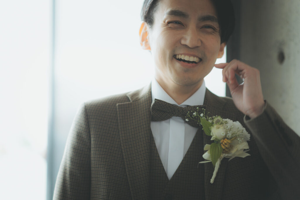 今日の日のために選んだドレスにタキシードを装い、お二人の表情もとても幸せそうでした。