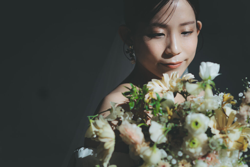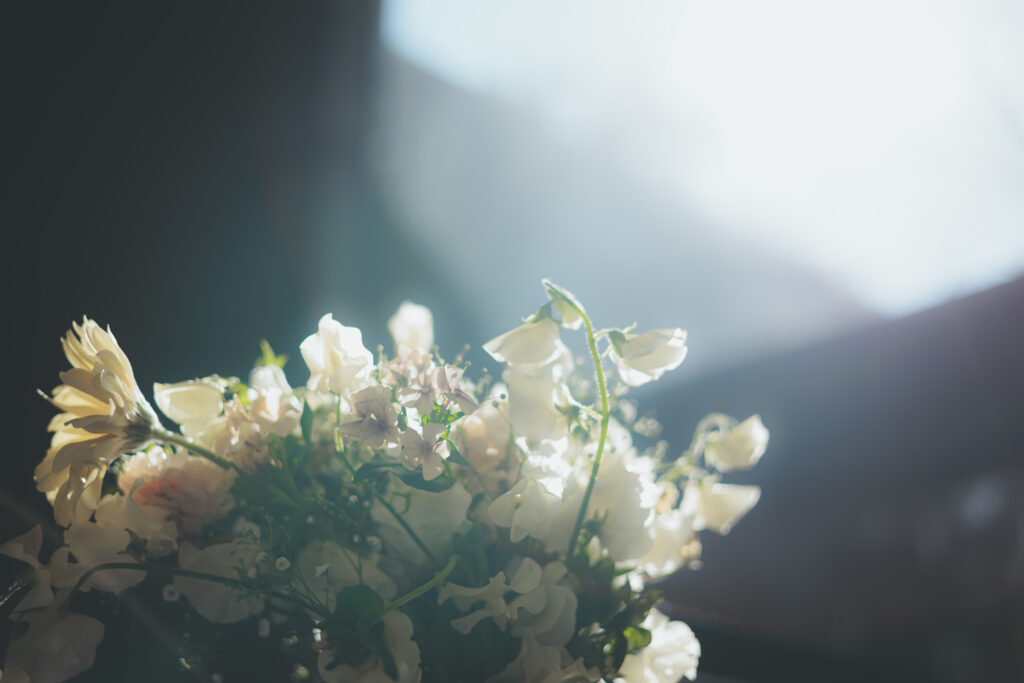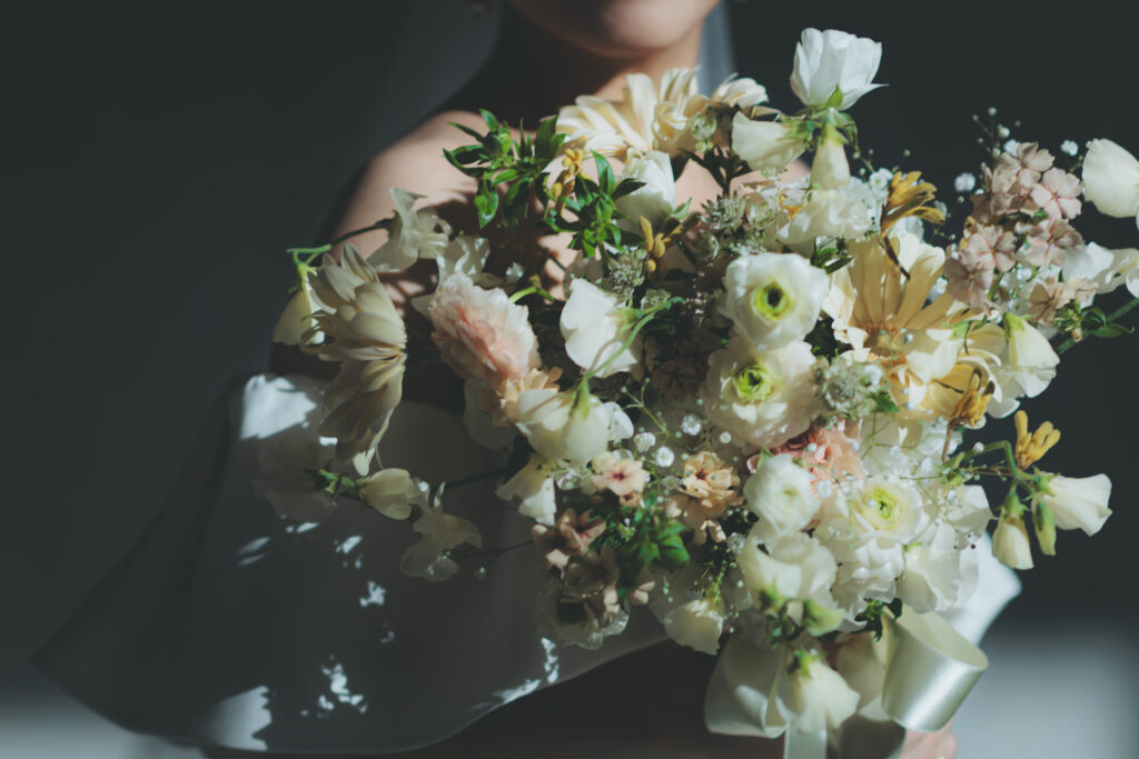 お打合せで一つずつご準備してきた生花のブーケも、ご新婦様の雰囲気にピッタリで、とても素敵でした。