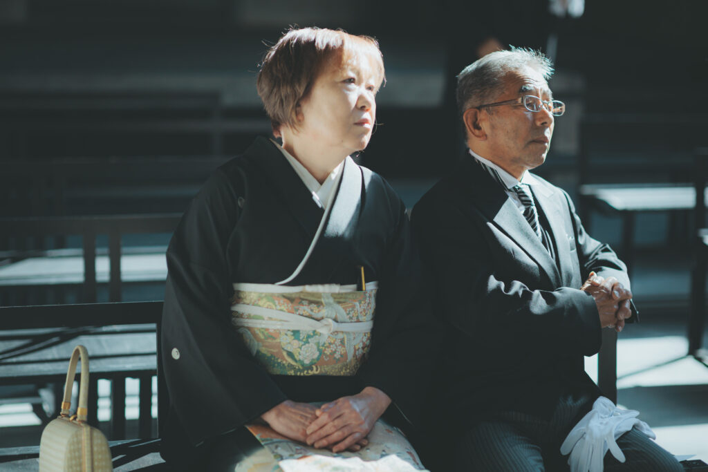 リハーサル後は挙式に向けて、教会内に御親族様が到着されます。お着物をお召しのゲスト様も多く、一層空間が華やかでした。