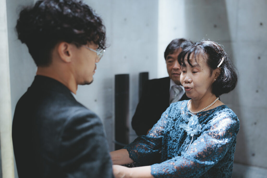 新郎様はジャッケトセレモニーで新たな出発の準備を親御様に手伝っていただきました。