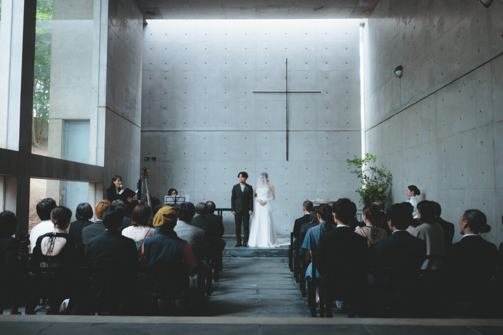 挙式の前には、お二人だけの風の教会での撮影時間をゆっくりとお過ごしいただきました。