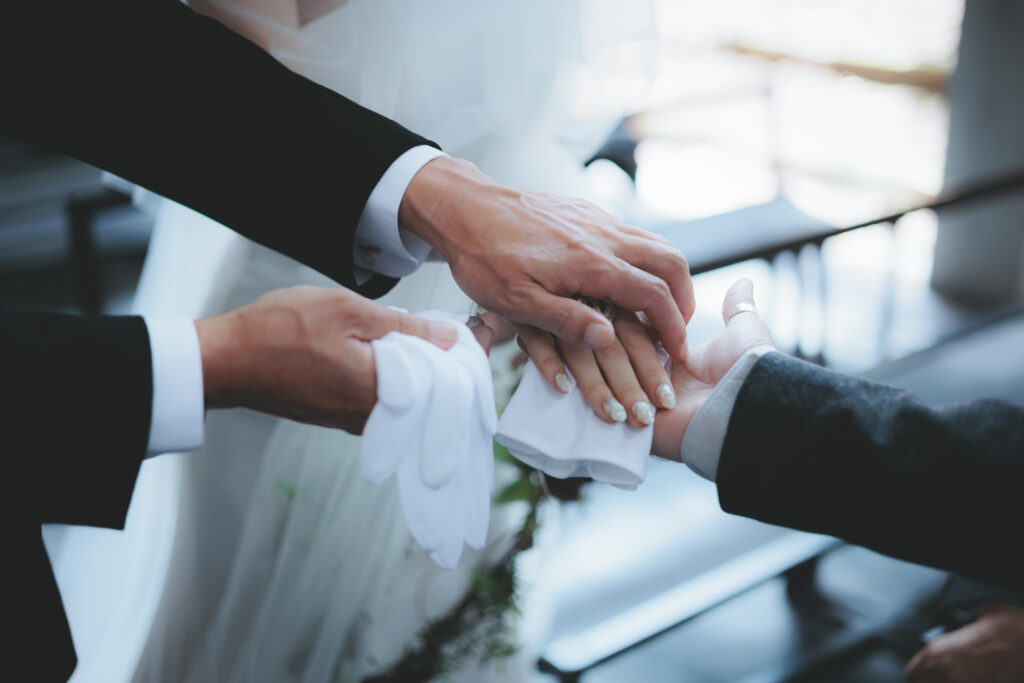 ゲストの皆さまが、おふたりの結婚の立会人となります。ゲストの皆さまに誓いをたてるスタイルです。
