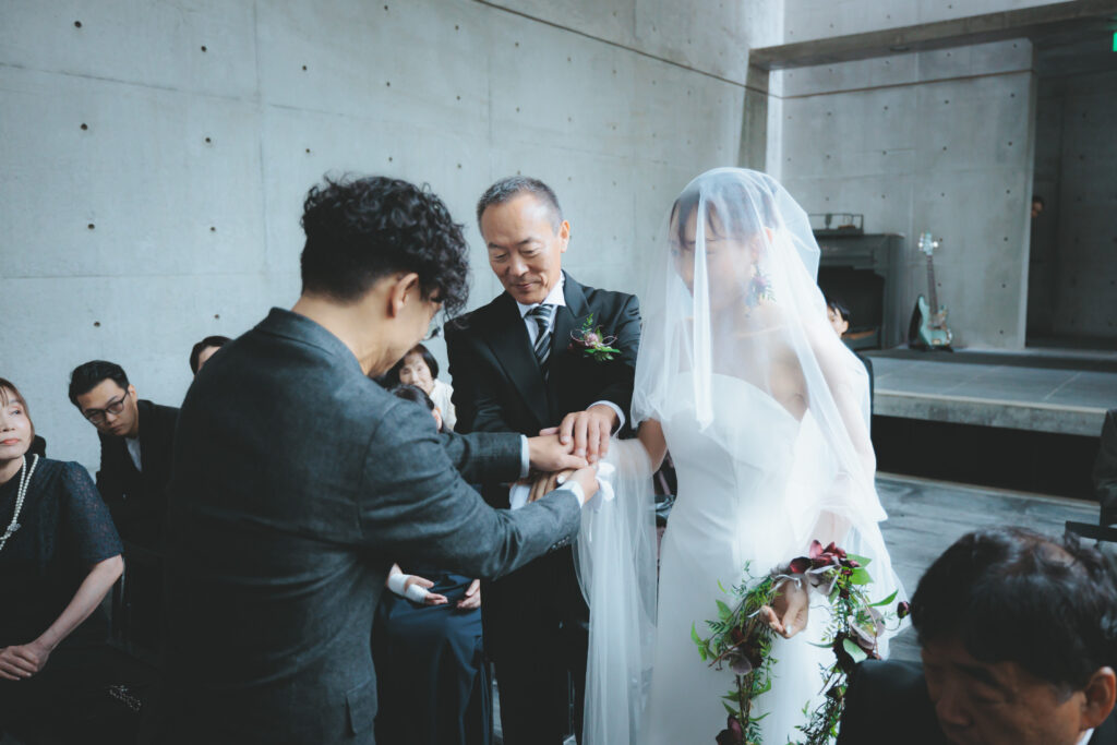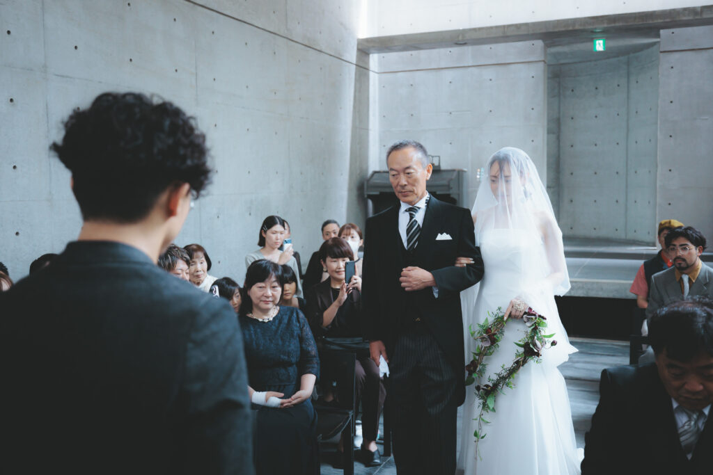 ゆっくりと一歩ずつ、これまでの道のりに想いを馳せながら、バージンロードを歩きます。
