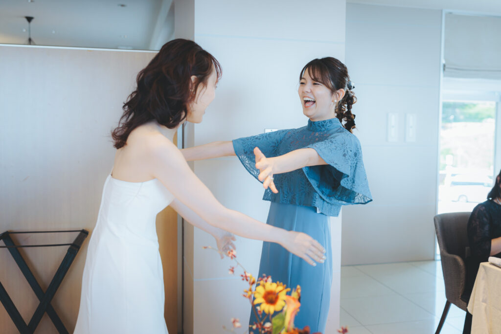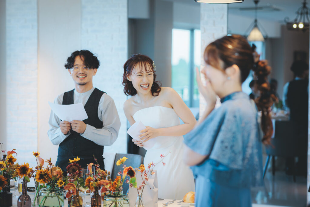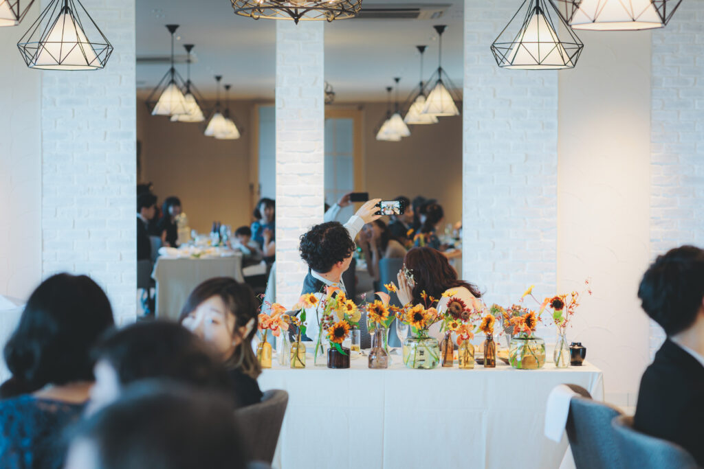 祝福の声とゲストの皆さまの笑顔に包まれます。